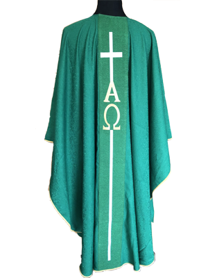 GOTHIC CHASUBLE BANDED COLLAR WITH EMBROIDERY GOLDEN ORPHREY AND NECK IN LAMINATED WOOL IVORY RED GREEN PURPLE CHORUS